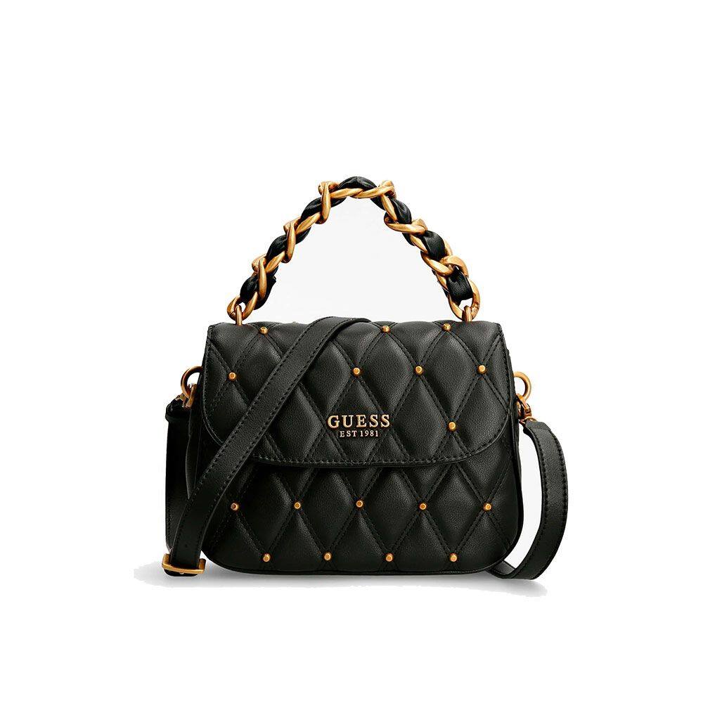 Elegant Quilt designed handbag . Top handle. Multiple compartments. Guess name Logo. Comes with charms and embelishments to make it look extremely attractive. Perfect to be carried at work & parties.
