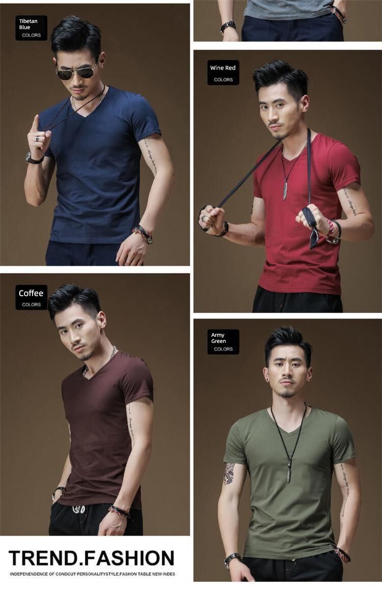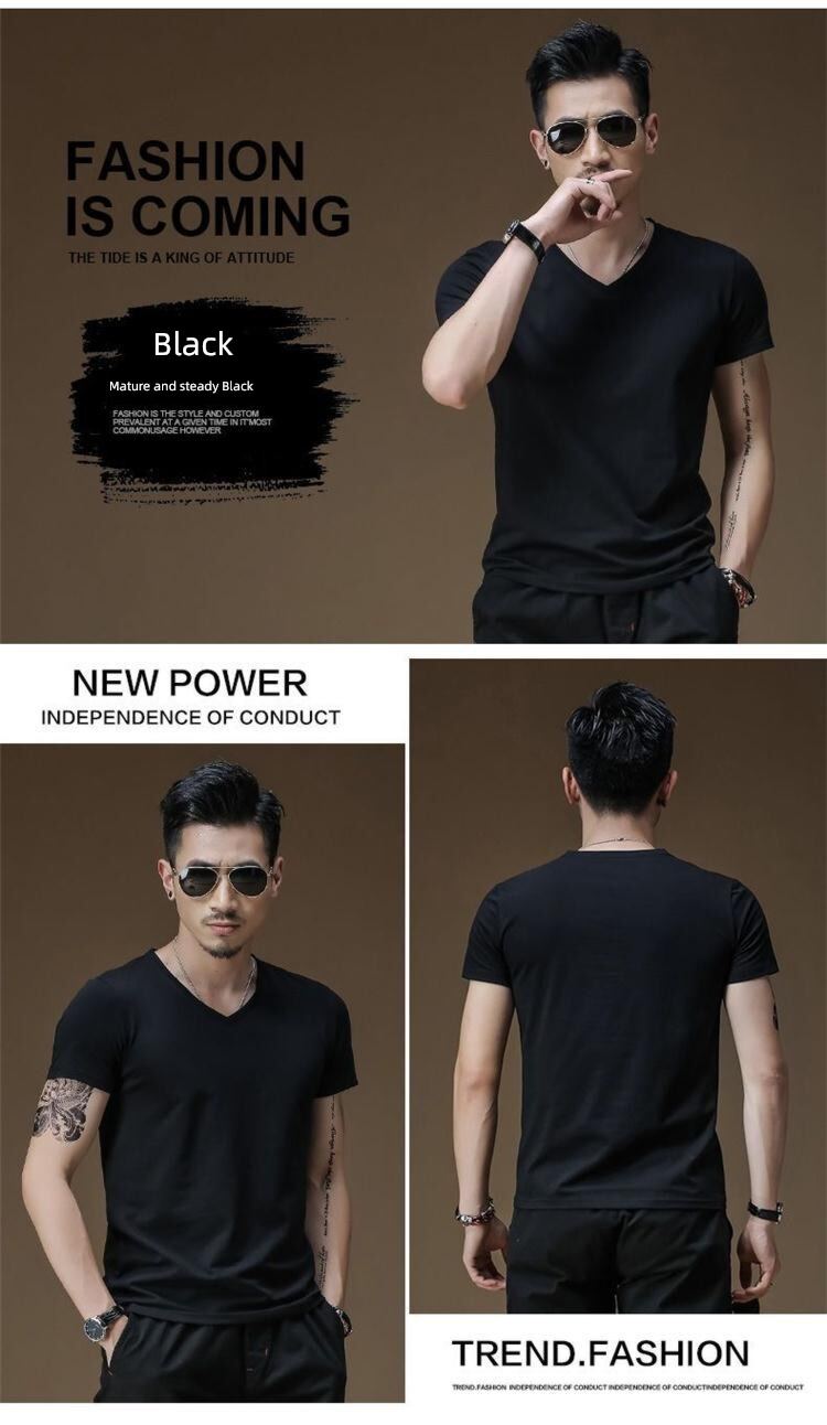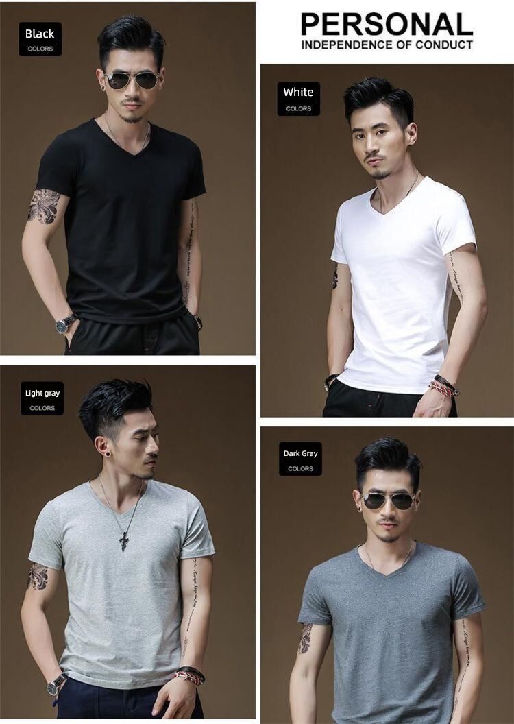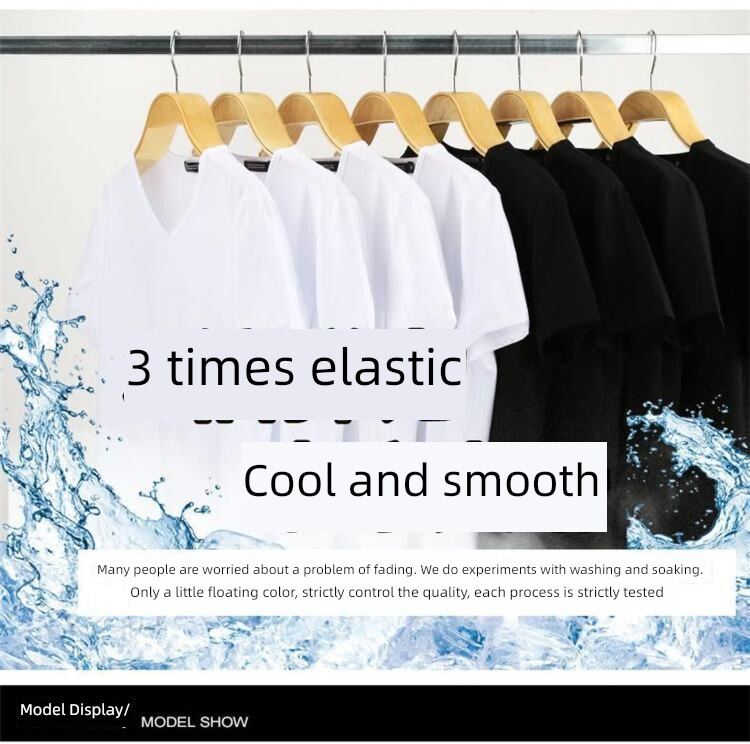 Modal男式纯色V领修身冰丝短袖衬衫