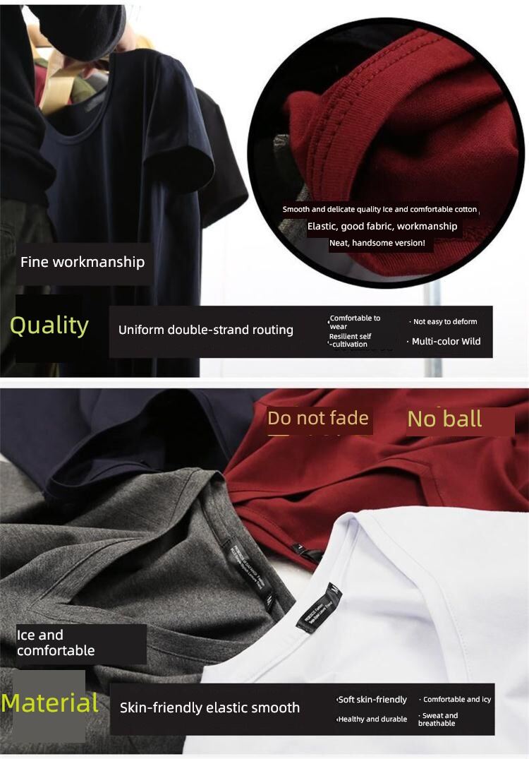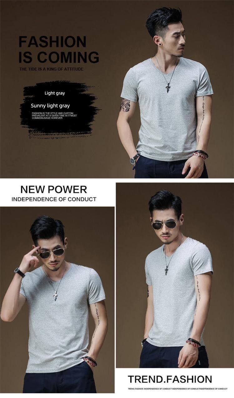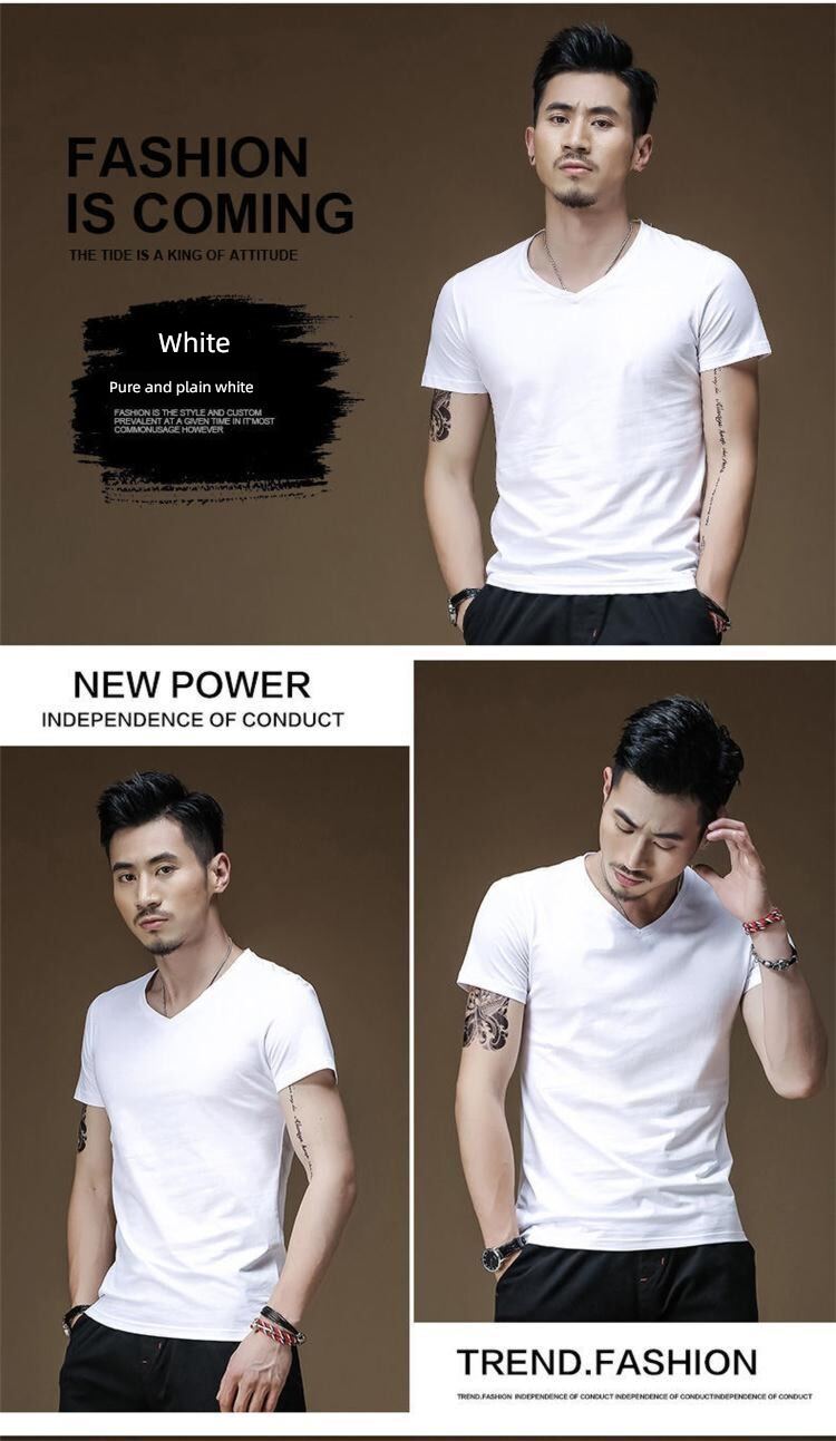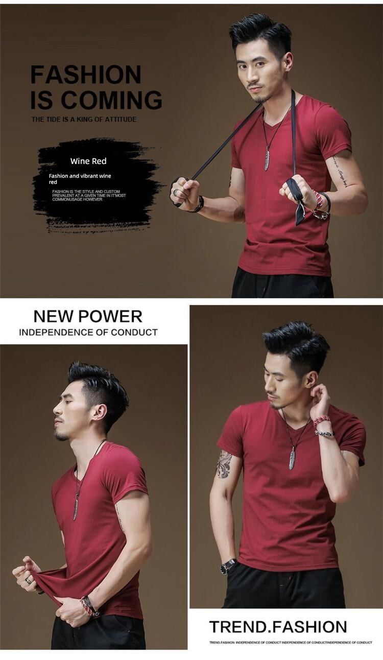 Modal男式纯色V领修身冰丝短袖衬衫