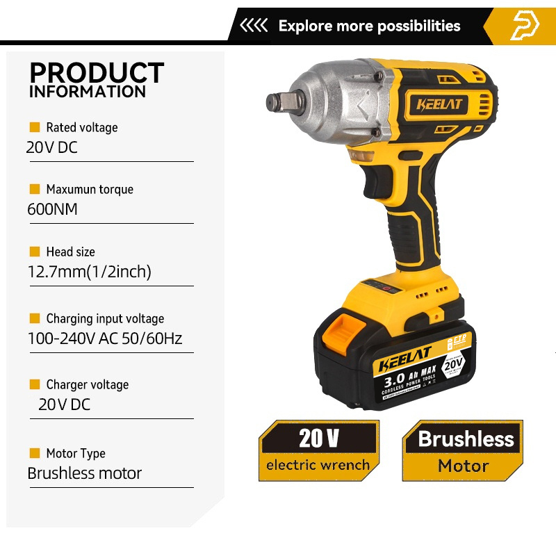 基拉特KID006 600N。M电动冲击扳手无绳大扭矩1/2“1/4”螺丝刀钻重型专业无绳冲击扳手插座电动工具可充电20V电池
