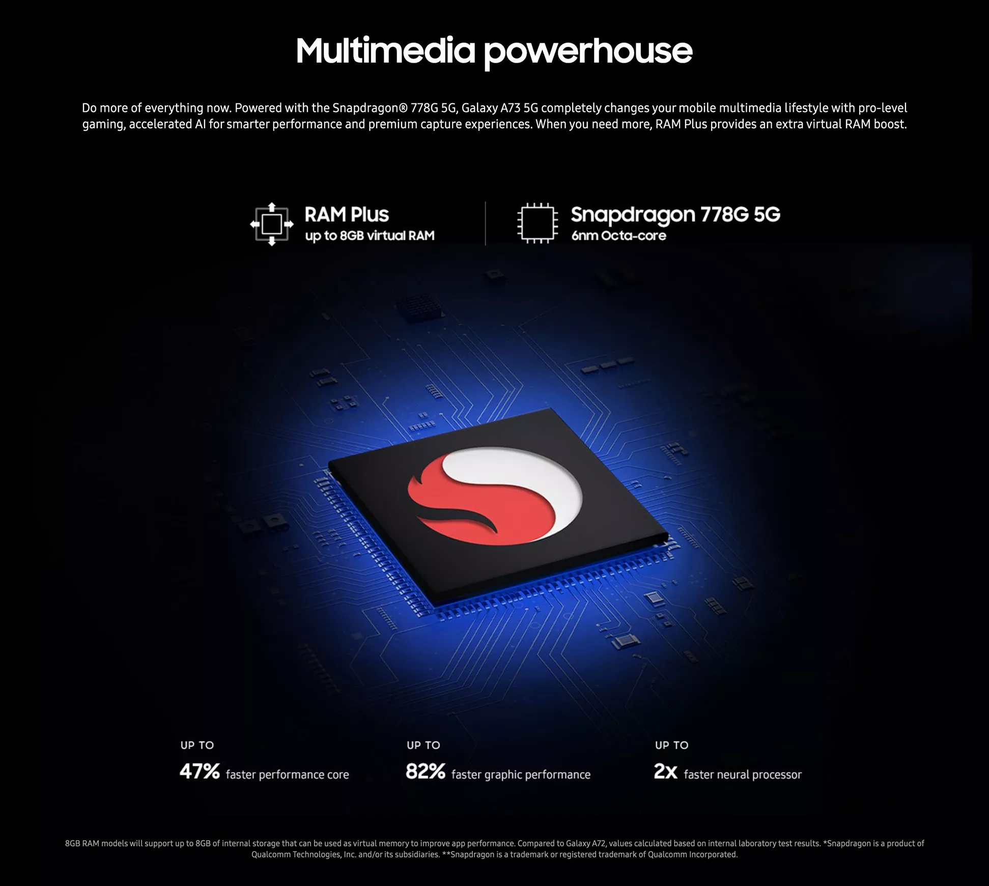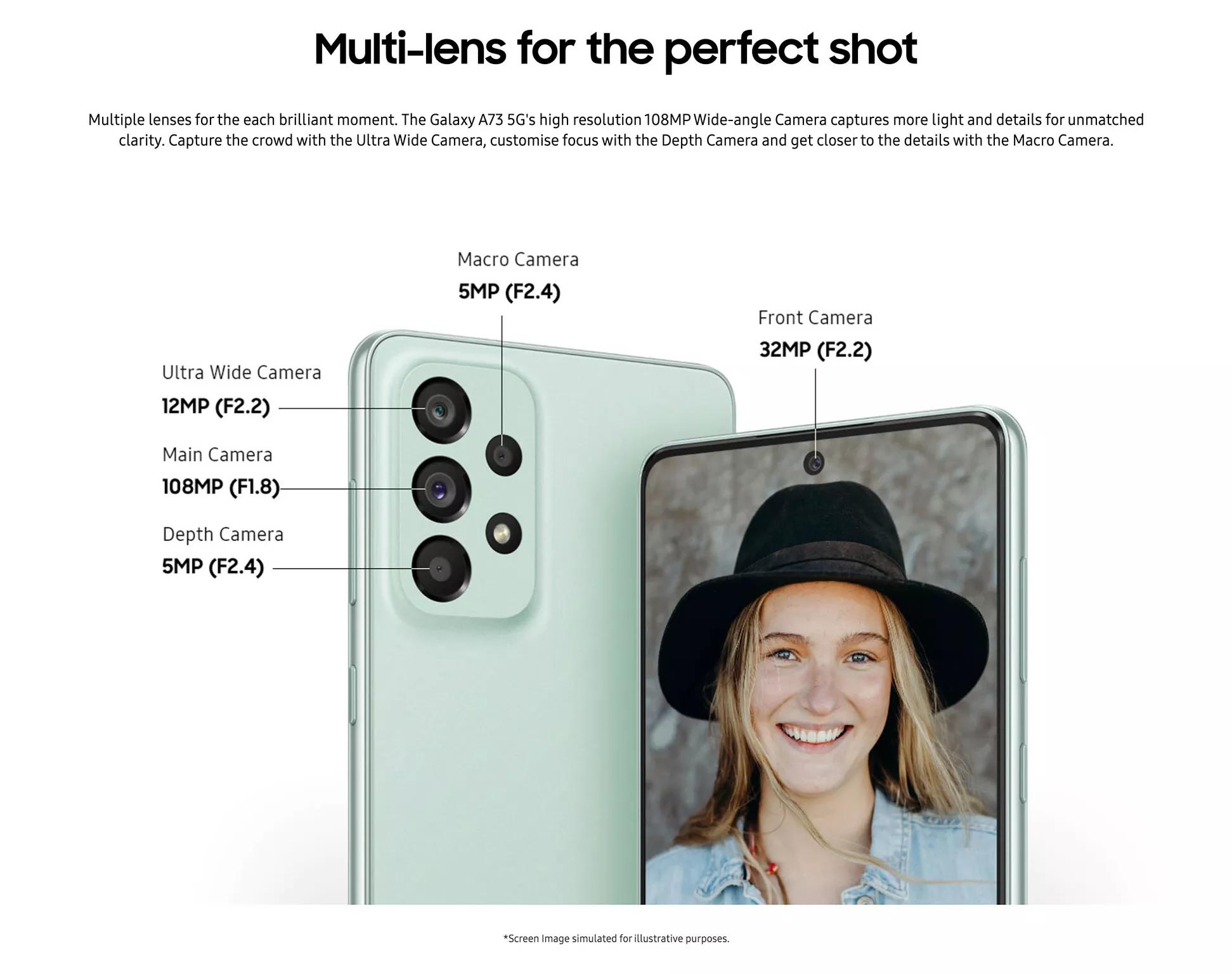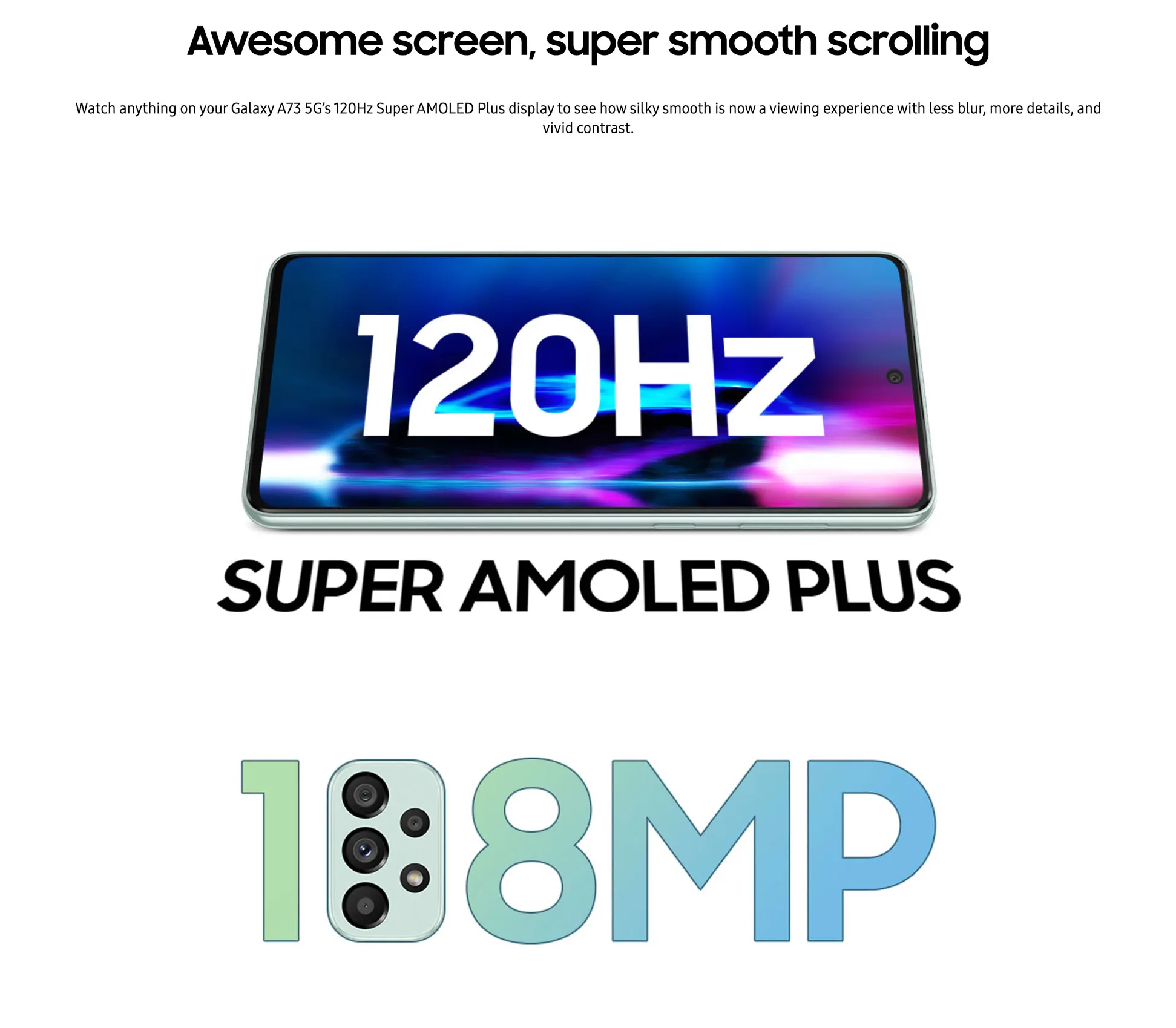 三星Galaxy A73 5G 128GB或256GB(免费:钢化玻璃+后盖)