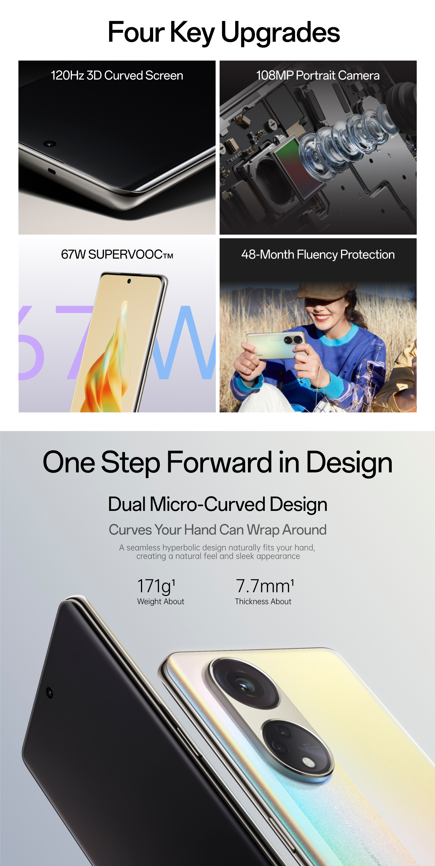 OPPO Reno8 T 5G/108MP人像相机/120Hz 3D曲面屏/67W SUPERVOOC/价值79美元的免费真无线耳机
