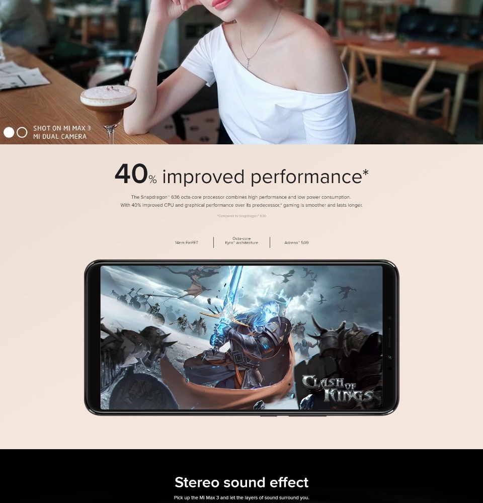 小米Max 3//64GB ROM 4GB RAM/6.9英寸/5500mAh电池/AI面部解锁/出口套装(SG保修)