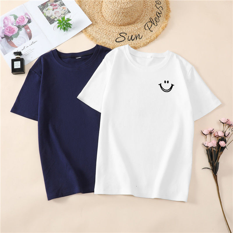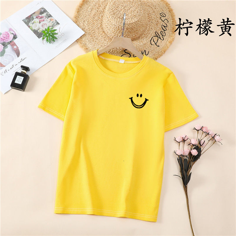韩国T恤女士优雅舒适微笑T女士短袖卡通衬衫