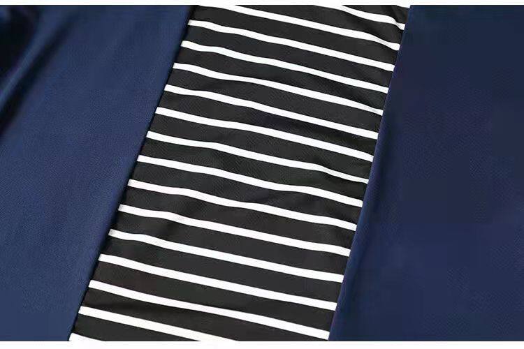 100KG胖女可穿2022新款韩式条纹长袖T恤女式短袖加大码盖腹圆领时尚T恤连衣裙优雅衬衫女式T恤