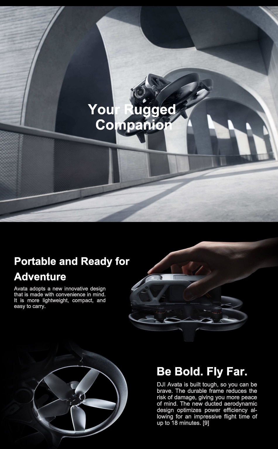 1. DJI Avata can be used with and DJI Motion Controller. The easy and intuitive control allows you to experience a more immersive flight and aerial photography.